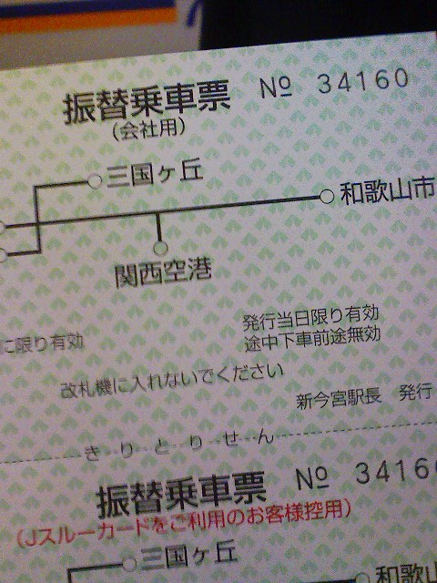 するかん2dayだから、できる限り南海で帰るんです。 と言ってから、東羽衣周りの方が安かったかもとか思いはじめ。。 向こうだと140円で、こっちだと160円? とりあえず今日はこのまま帰ろう(ぐ。 |