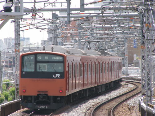 玉造で撮影したら 鶴橋駅停車中の201も入りました。 朱色の201系も だいぶ 違和感なく見れるようになりました |