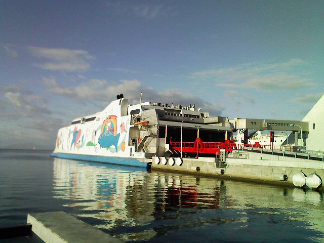 函館発青森 団体乗ってるみたい 高速フェリーの最後、いってきまー! |