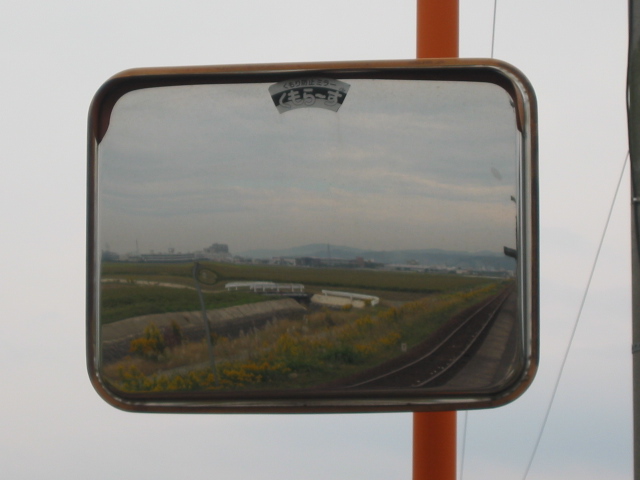 この写真を撮ったのは、越美北線のどこでしょう。 A:北陸本線 一乗谷 B:北陸本線 越前花堂 C:北陸本線 六条 D:北陸本線 越前薬師 ヒント:このミラーは、下り線列車用です。 |