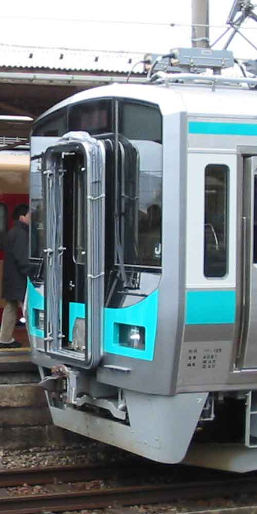 解析方法: まずは停車駅に絞り込み、連結器カバーの有無から駅舎が海側か山側か決定。 その後5番線までで、6.7が工事中の駅ということで都会側をカット。 その結果長野が残り、ぐぐーるイメージ検索で似た画像を捜索。 結果、以下の画像がヒット。 http://sumomo.ski.ac/photo/jr-train/jr_189_shinnetsu-reray-myoukou.jpg |