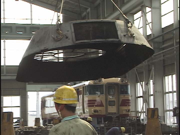 キハ181ラジエーターグリルの上についてる 強制空冷及び油圧回転式ファンの覆いです。案外へっぽこいな〜なんて見てました。 ちなみに、この後左にある(ってみえないじゃん)181-15に仮儀装されます。 この頃は、あんなことになるなんて思いもしなかった。 ばらばらのDD51もあったり(笑)←KATOのDD51のように分かれます。 友達のつてで、後藤工場見学ツアーに混ぜてもらったときに収録しました。 この頃は、11月の運転所祭りもなかったし...。 |