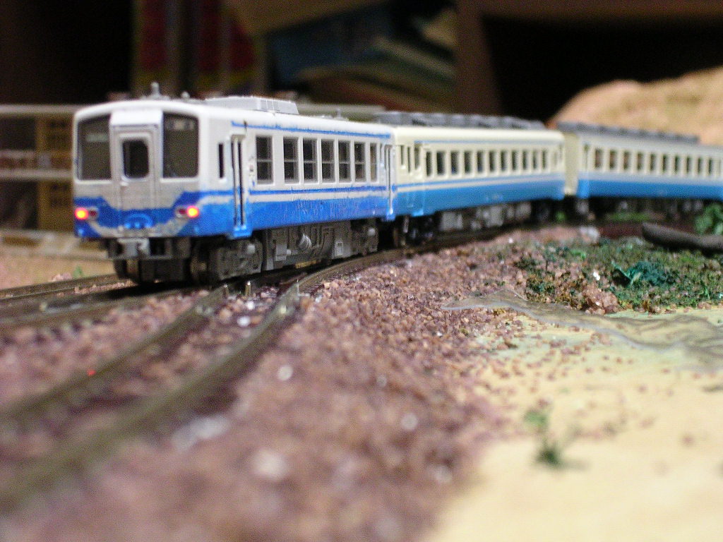 いれかえたほうがいいかな スカート先頭にしたかったんで こんな編成に。 キハ58は第三編成もあるんですが 併結用にアーノルドのままで。 キハ40のカプラー変更も 終了しました |