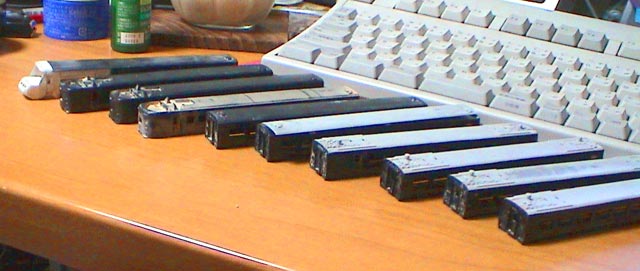 窓枠まできちんとやってる。 N40作った時そこまでやらなかったなぁ。 質より量で、量産継続中(愚)。 今日は全車塗装剥がし完了。 勢い余って余剰車まではがしてしまったとか。 10両もあるけどどうするんだろ。。。 1両は窓と床と台車無いけど。。。 |