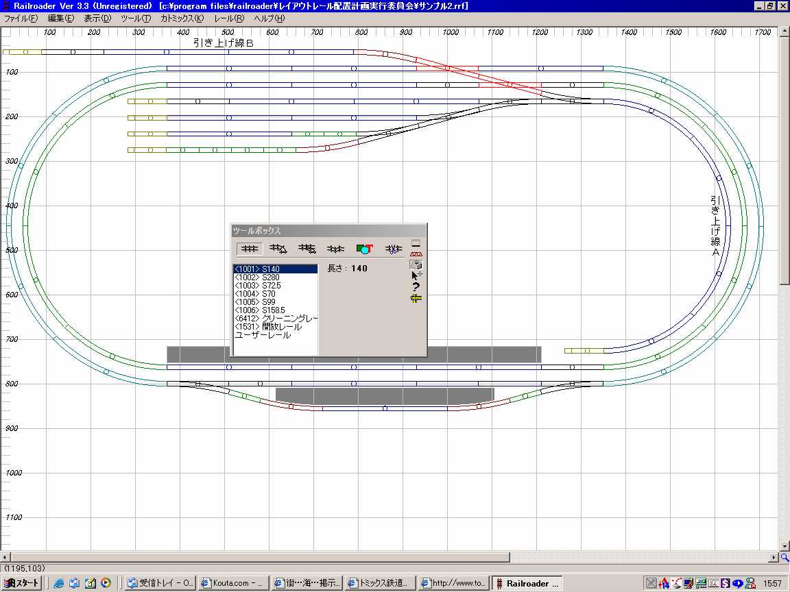 豪華になってる・・・ 言われてみるとそうだ・・・ いいな・・・ お金あって・・・(愚) お金ちょうだい!(え・・・ いいもんいいもん、再来年の今頃には凄いことにしてやるから(謎) 「精巧」「リアル」「優雅」「巨大」「惚れる」 がキーポイントな感。 んでもって、レイアウトの計画が一応成立。 こんな感じで進める予定です。 やっぱり、引き上げ線は1本にしました。 |