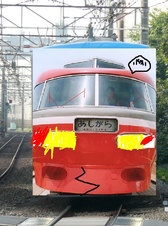 458号はの返事をします。 全体の色も変えてみては? 京浜東北線色や総武線色とか・・・・。 あとおもいっきり顔以外ステンレスとか・・・。 かなりネタ切れしそうです。 |