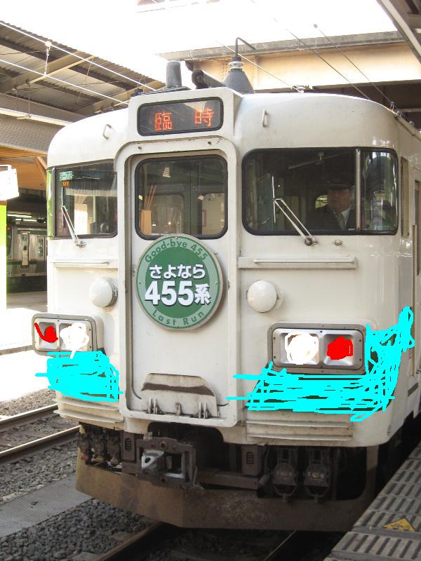 459号は後ろのラインの色を変えてみては?総武線色とか、たーくさん・・・・ 221系の湘南色・非国鉄民営化塗装 460号の顔は白。非貫通(貫通でも。)で上の方向幕廃止で真ん中に方向幕・・・列車名のやつ。 ライトをE231系山の手線型。 |