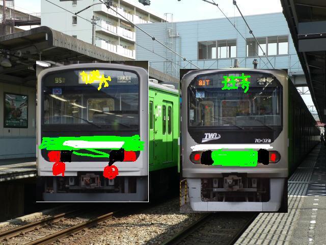 103でいいから高運転台で211系ライト貫通。おでこのライトは残してー。 205系の顔に地下鉄みたいな扉つき。低運で。 |