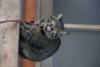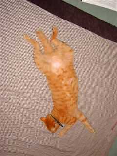 今のうちの猫。気持ちよく(?)寝ているときに母がむりやりこんなポーズにしました。