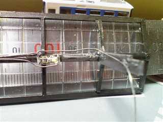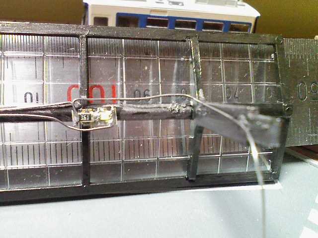 2012のチップLEDに1608の160Ωチップ抵抗をシール基板上に半田付けして、それを0.4mmくらいの亜鉛メッキ線で配線してあります。