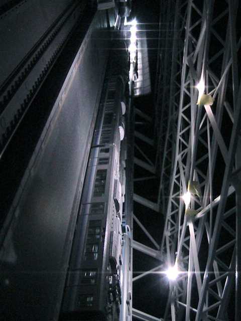 大天井の照明テスト中。