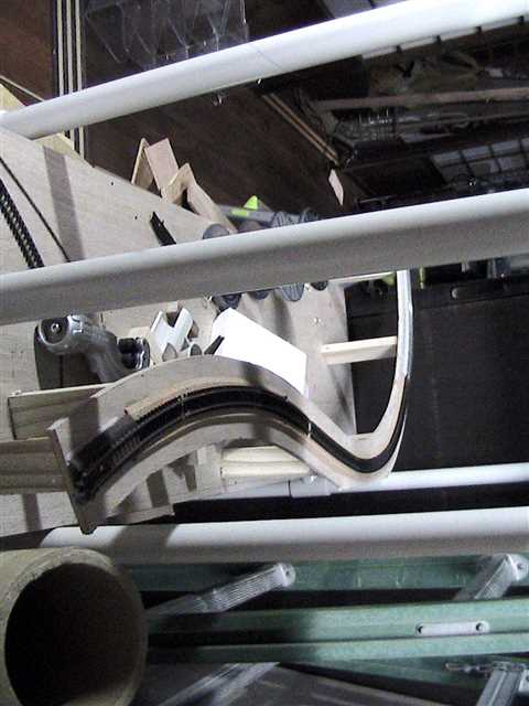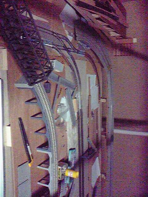 トラス橋の中で線路をカーブっ。