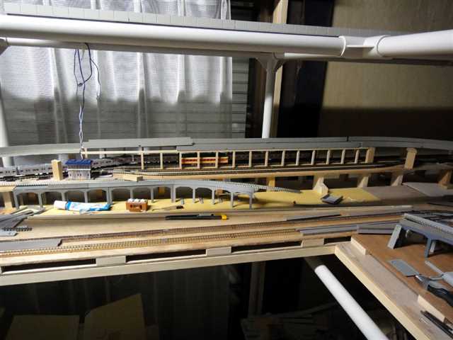 この部分は2層高架なので、あとで塗りにくくなる分先に施工中。