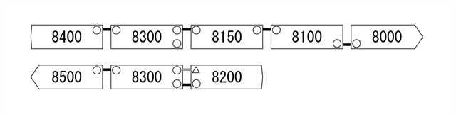 ちなみに8300と8200の間の灰色は、現行2B減車編成対応工事です。