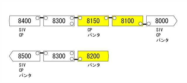 8000系の各車搭載機器はこんな感。